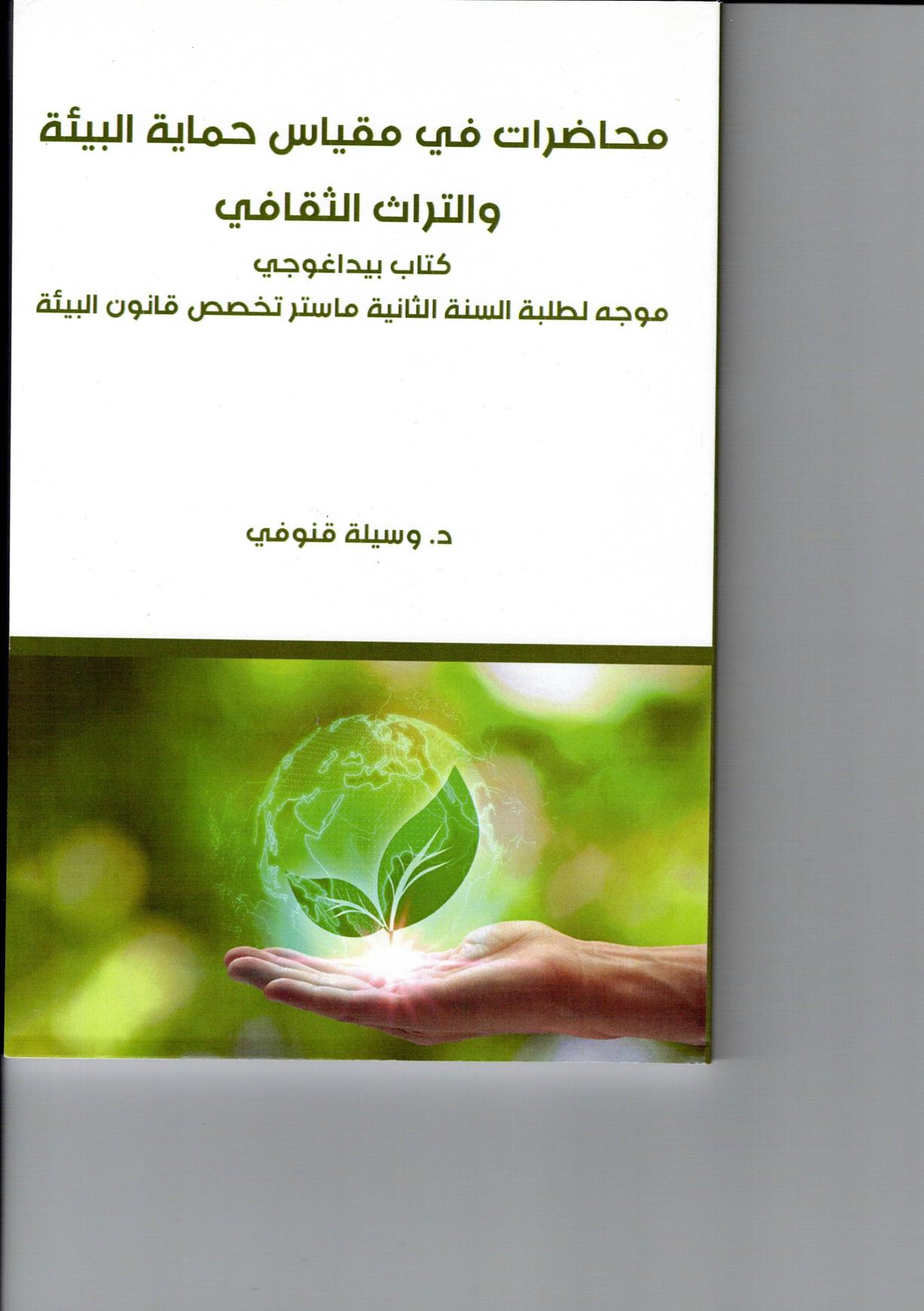 العنوان: محاضرات في مقياس حماية البيئة والتراث الثقافي. المؤلف : للدكتور قنوفي وسيلة |