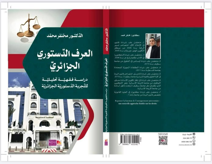العنوان: العرف الدستوري الجزائري-دراسة فقهية تحليلية للتجربة الدستورية الجزائرية المؤلف : أ د مخنفر محمد. |
